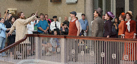 A reproduction was placed at the top of the stairs of Seurat's A Sunday on La Grand Jette, just outside the gallery where the massive, much-loved original resides. On cue, the entire first act cast, comprised of all the major characters that appear in the painting, as well as Seurat, himself, walked past the gallery door out into the the architectural fragments gallery at the top of the staircase, and, before singing one of the climatic numbers of the musical, stopped to study for a moment some of items on display.